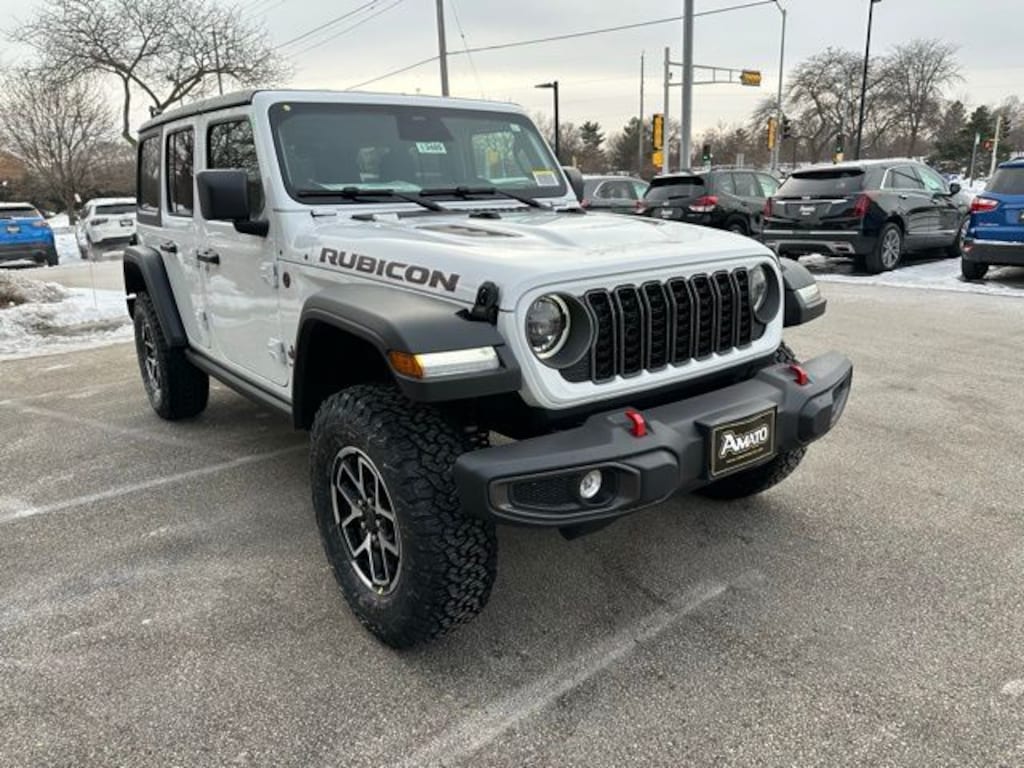 The 2026 Jeep Wrangler 4-Door Rubicon 4x4 in Bright White Clearcoat delivers the rugged capability and iconic presence the Rubicon name is known for. Its bold exterior is equipped with LED headlamps, fog lamps, black fender flares, colored-accent grille, and a full-size spare mounted to the swing-gate for authentic Wrangler utility. Heavy-duty components, skid plates, off-road-ready tires, and removable roof and windows preserve the open-air freedom that Wrangler drivers expect, while deep-tinted glass and heated power mirrors add comfort and practicality to everyday use.