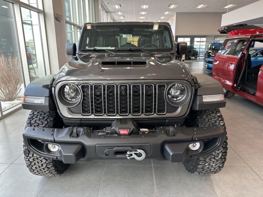 The 2026 Jeep Wrangler 4-Door Moab 392 4x4 is a high-performance, off-road-ready SUV that combines legendary Jeep capability with the brute power of a 6.4L V8 SRT HEMI engine. Finished in Granite Crystal Metallic Clearcoat with a black interior, this four-door Wrangler makes a bold statement with 17-inch machined wheels with black pockets, 35-inch Rubicon 392 suspension tires, black fender flares, black door handles, and deep-tinted glass. Its exterior is enhanced with a body-color grille with colored accents, auto high-beam LED headlights, cornering lights, swing-out rear cargo access, and a removable three-piece hardtop, as well as a Sky One-Touch power top for open-air adventure.
