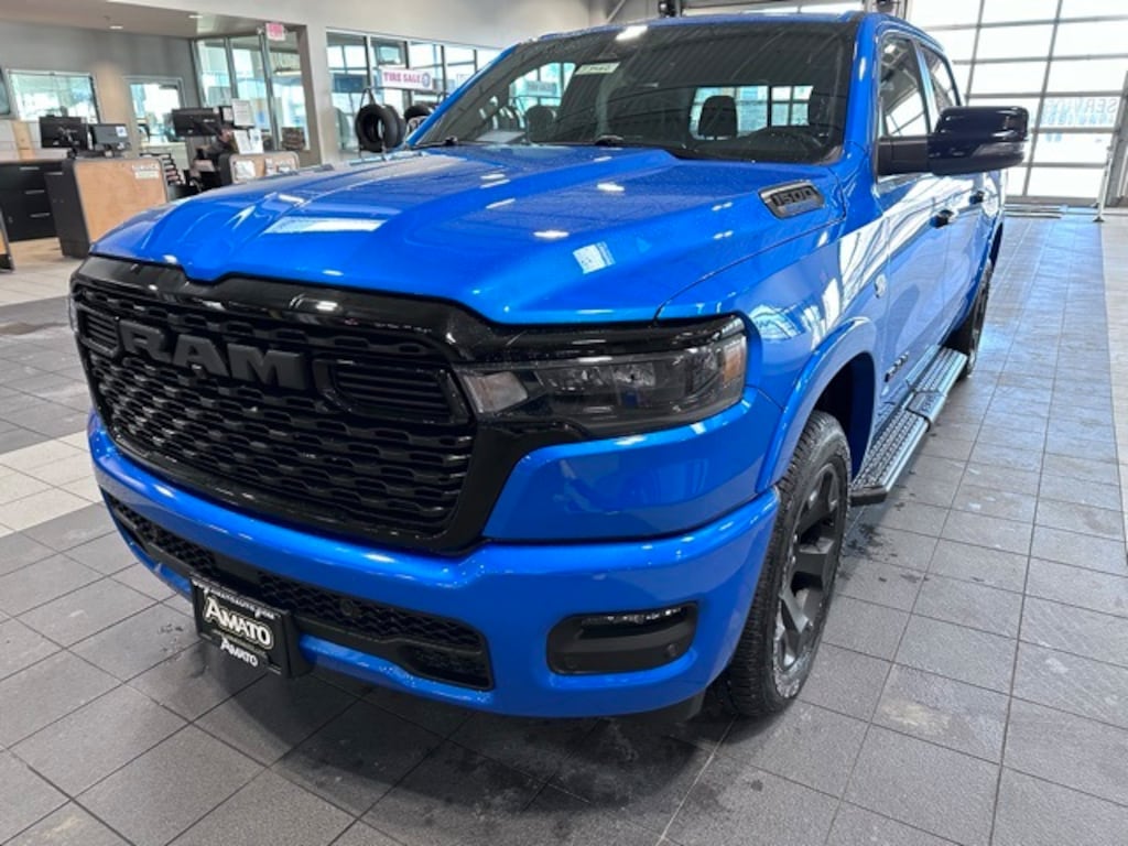 The 2026 Ram 1500 Big Horn Crew Cab 4x4 combines bold styling, V8 power, and advanced technology to deliver a truck thats equally capable on the jobsite or on the open road. Finished in striking Hydro Blue Pearlcoat with a black interior, this Big Horn stands out with aggressive design cues and confident presence.